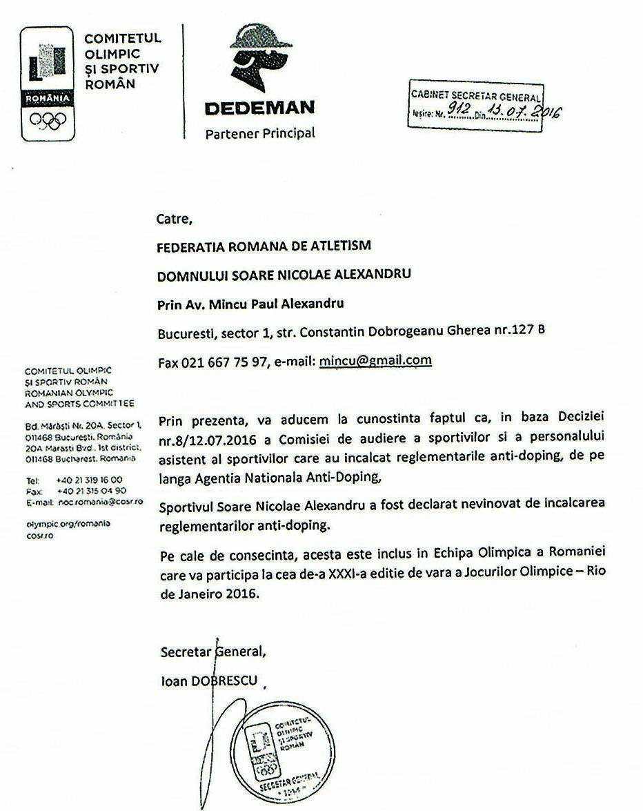 ATLETISM | Nicolae Soare – NEVINOVAT!
