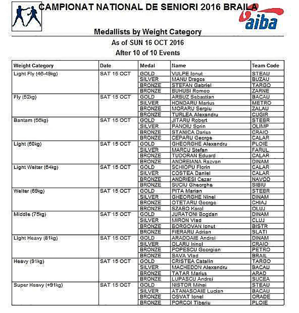 Medalie de aur/ campion național – Arbuz Sebastian (52 kg)