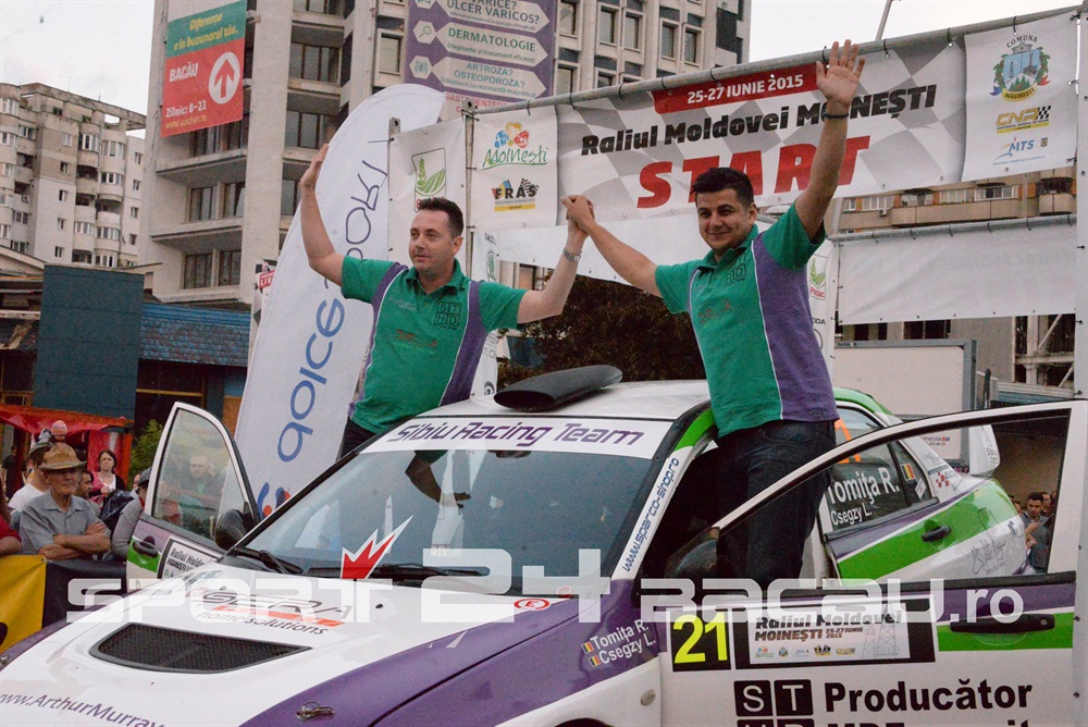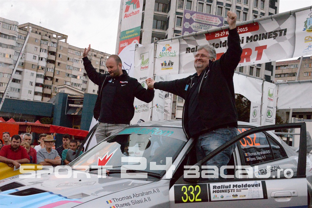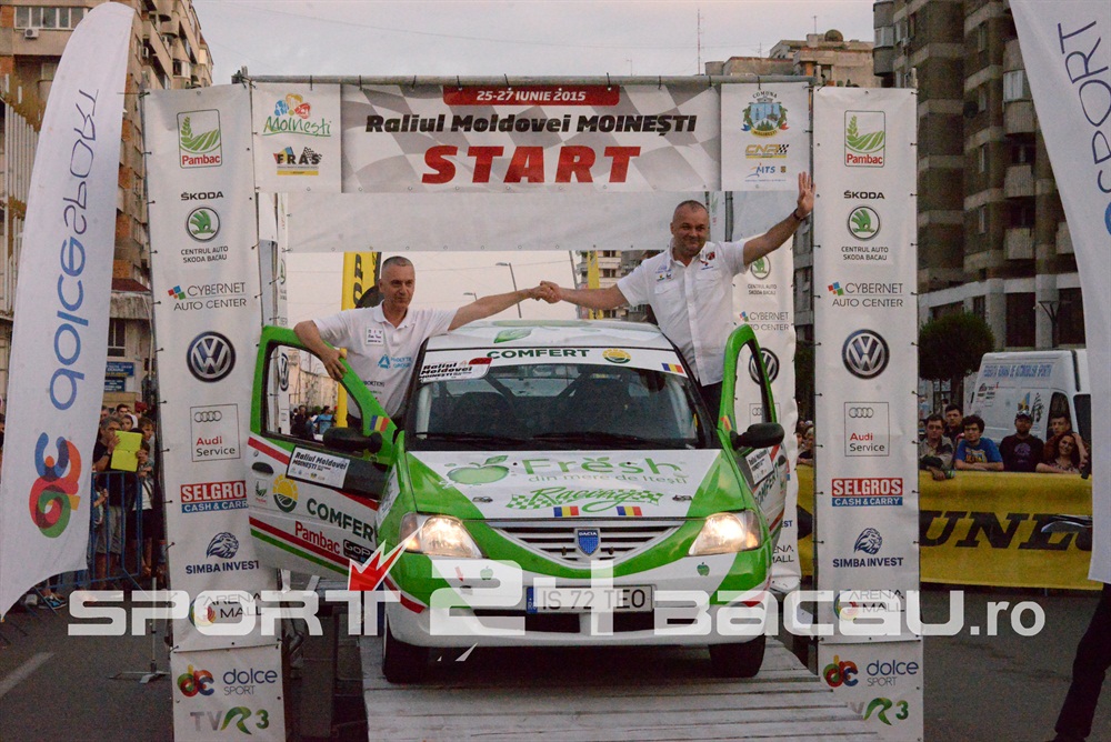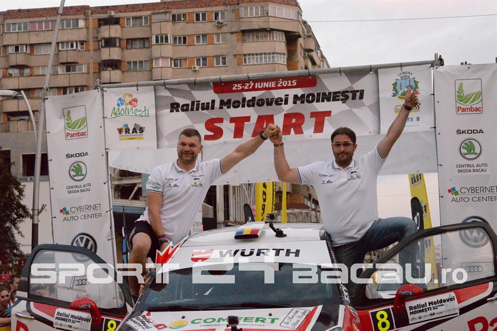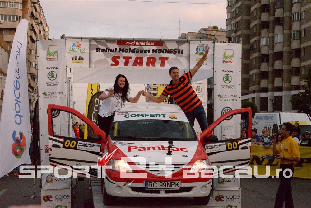 De la bun început am consemnat o surpriză: Cătălin Grigoriu, copilotul lui Adrian Răspopa în ultimele două sezoane și campion împreună cu acesta în 2014, se află acum la volanul propriului său echipaj, alături de soția sa, Raluca. E drept, cei doi conduc pentru Raliul Moldovei-Moinești doar un automobil Dacia Logan al organizatorilor, însă intenția lor este să participe împreună la toate etapele. Un debut local a fost și cel al echipajului condus de Lucian Florea, care deocamdată se rodează îndeplinind, de asemenea, sarcini organizatorice. Liderul clasamentului general, Simone Tempestini, va pilota în etapa băcăuană o mașină din clasa 2RM, pregătindu-se pentru o etapă a Campionatului European din Polonia. El va lupta pentru supremația în etapă cu principalii favoriți de la 2RM, Raul Badiu și Adrian Răspopa. Mașina cu tracțiune integrală a lui Marco Tempestini va fi pilotată la Raliul Moldovei de tatăl acestuia, Marco, care și-a propus, normal, victoria. Ar fi a patra în acest campionat, din tot atâtea posibile, pentru bolidul lui Simone.