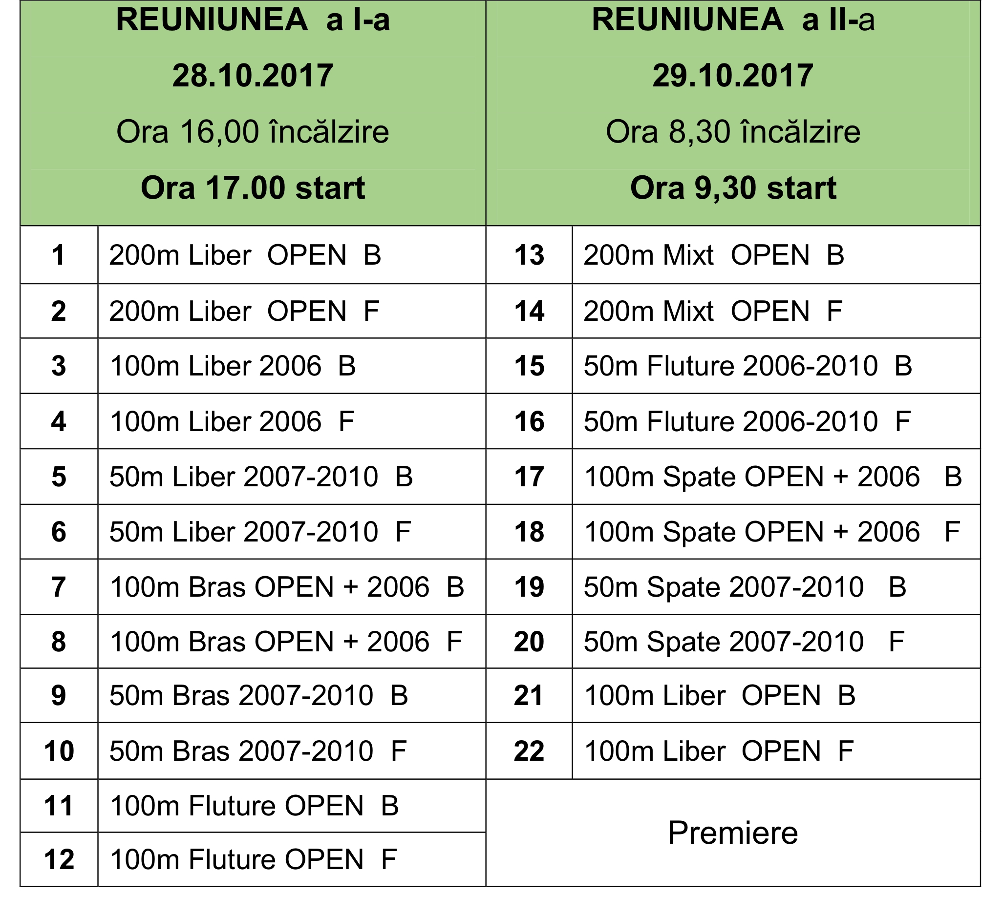 Programul competiţiei: