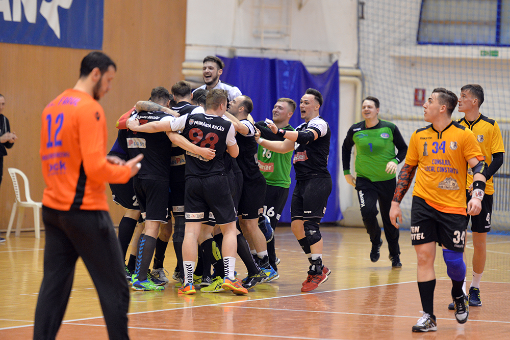 Handbaliștii băcăuani merg din victorie în victorie în fața propriilor suporteri în acest an. După ce au început returul cu un succes prin care au detronat liderul Politehnica Iași (27-23), urmat de un altul în disputa cu „satelitul” prim-divizionarei HC Dobrogea Sud (33-28), elevii lui Gabriel Armanu și-au adjudecat astăzi derby-ul cu cealaltă candidată la promovare, HC Farul Constanța (24-23).
